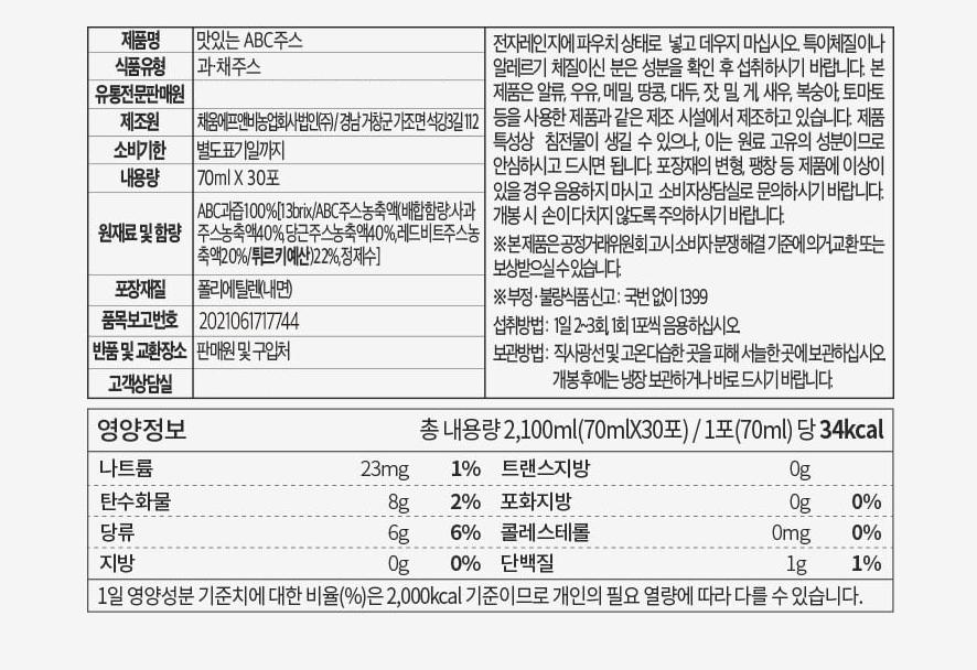 ǰ¸í ¸ÀÀÖ´Â ABCÁÖ½º 70ml 30Æ÷